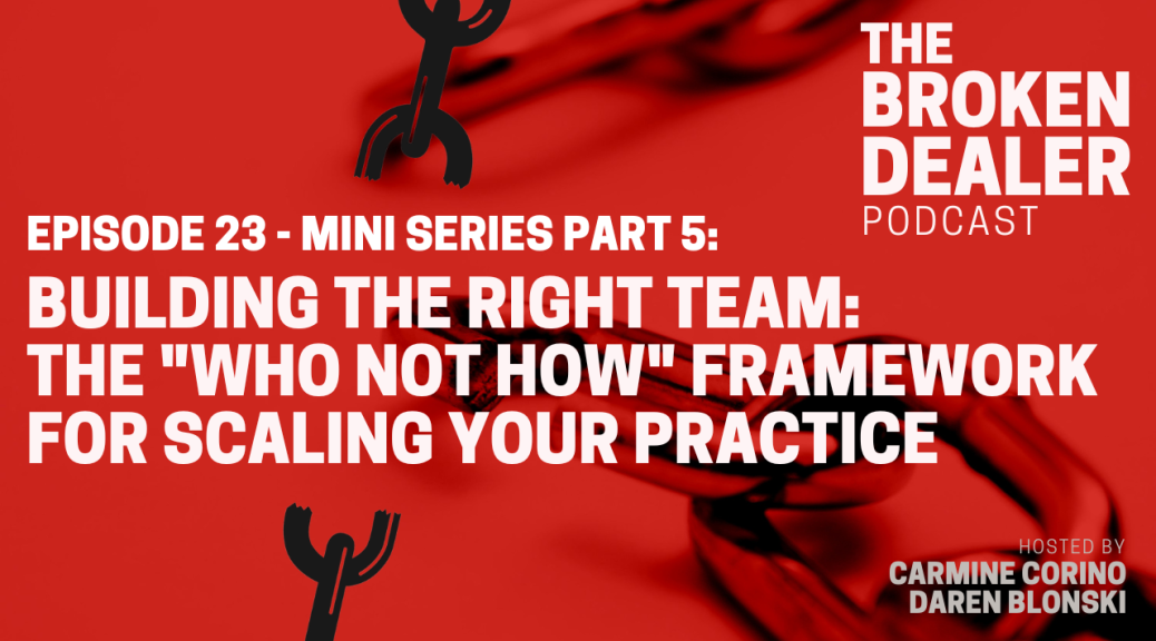 In this episode, the fifth and final installment of their series on scaling financial advisory businesses, Carmine Corino and Daren Blonski break down the “Who Not How” framework and what it actually looks like to build a team that frees you to operate as the visionary in your firm. They walk through the key hires every advisor needs to scale, from executive assistants to COO-integrators to servicing advisors, and explain why the right culture matters just as much as the right candidate.